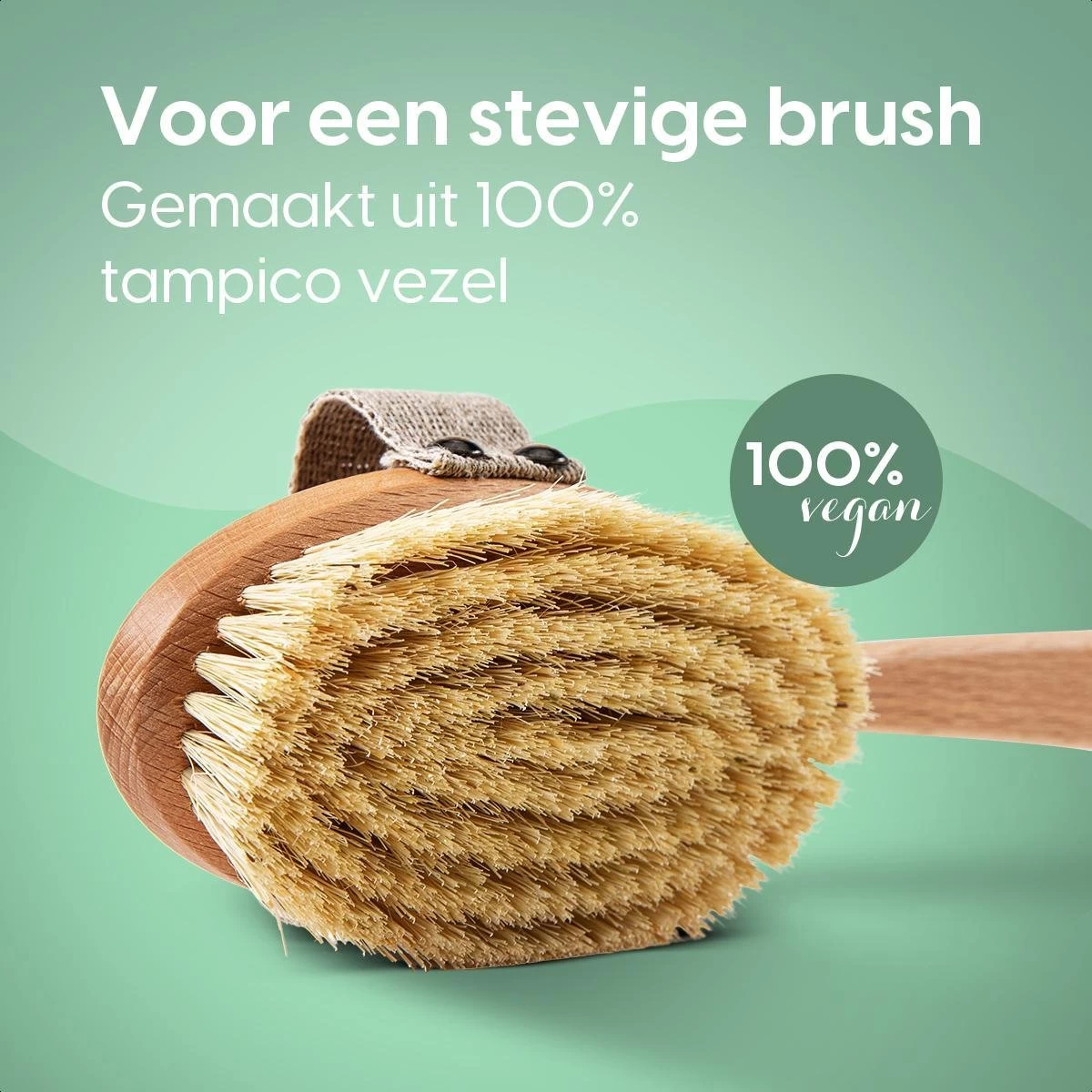 De haren van de borstel zijn gemaakt van de tampico plant. Een sterke vezel die 100% vegan is. De borstel zorgt voor een grondige brush. Ideaal wanneer je je huid even goed wil aanpakken!