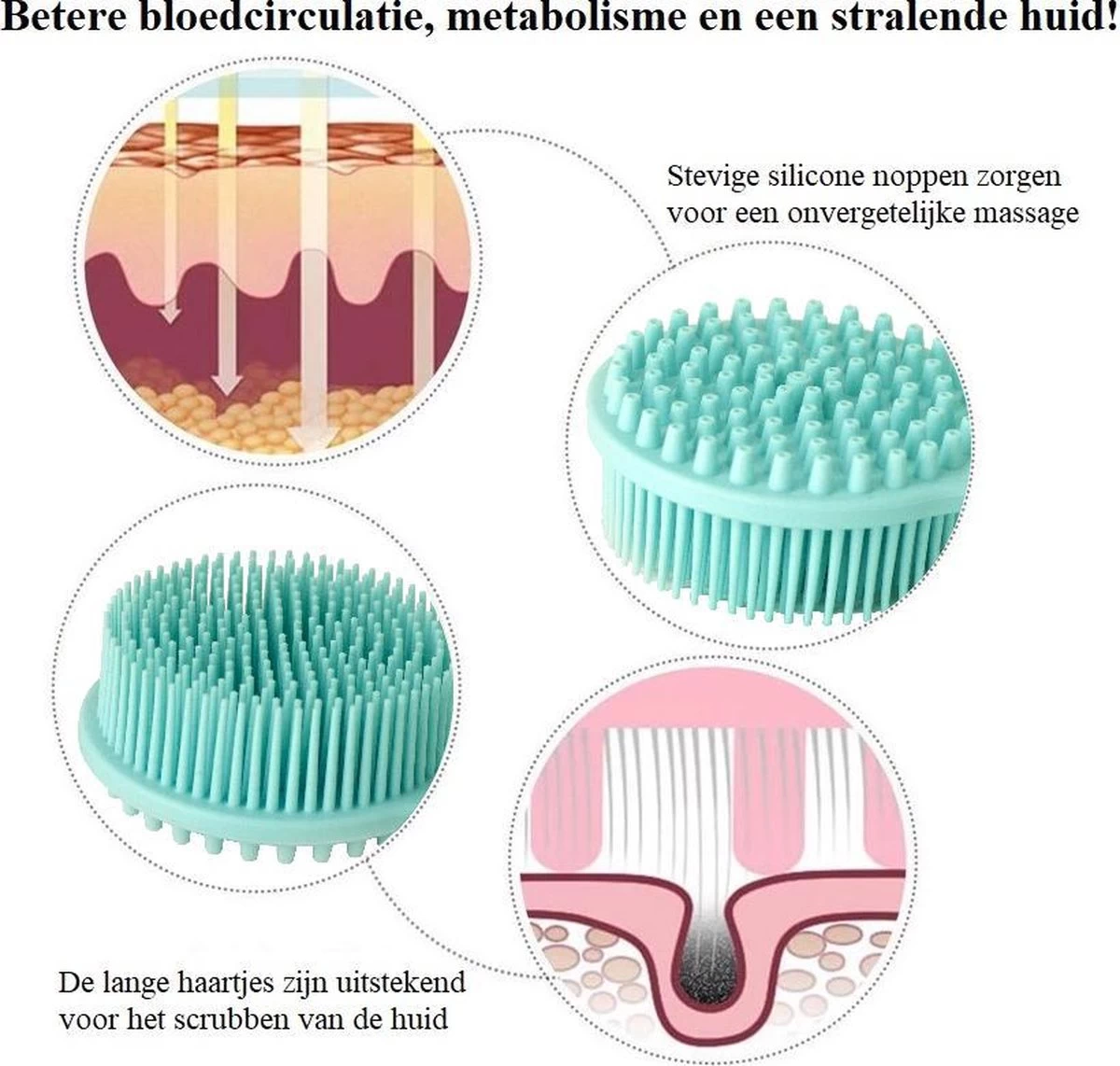 Dankzij onze Blubs siliconen lichaamsborstel met een dubbele kop hoeft u uw ouderwetse houten badborstel niet meer om de aantal maanden te vervangen, omdat deze lelijk verkleurt, de borstelhaartjes loslaten, zich bacteriën in nestelen of omdat het simpelweg snel kapot gaat. Met behulp van de Blubs siliconen badborstel worden al deze problemen verholpen en bereik je met de dubbele werking, het beste resultaat.
