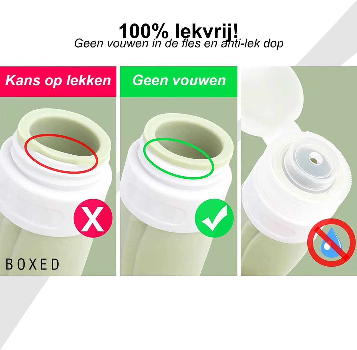 Daarnaast kunnen de flesjes van Boxed goed tegen een stootje. Het siliconen gedeelte van de flesjes is namelijk zeer sterk en flexibel. Ook is dit erg handig, omdat je zo alles gemakkelijk uit het flesje kan knijpen, wel zo duurzaam!