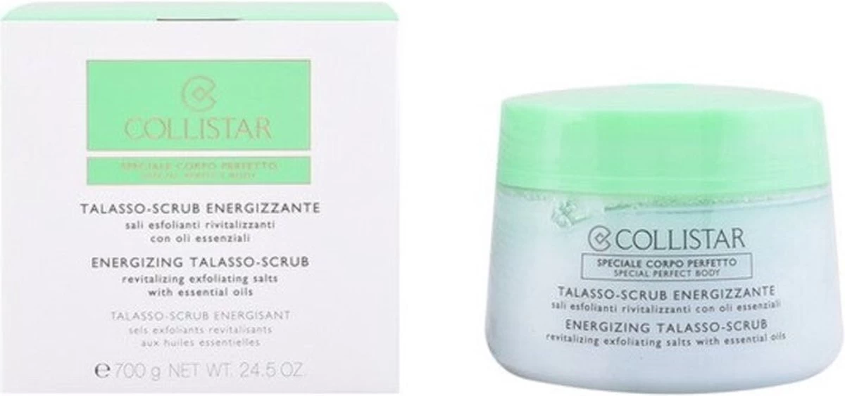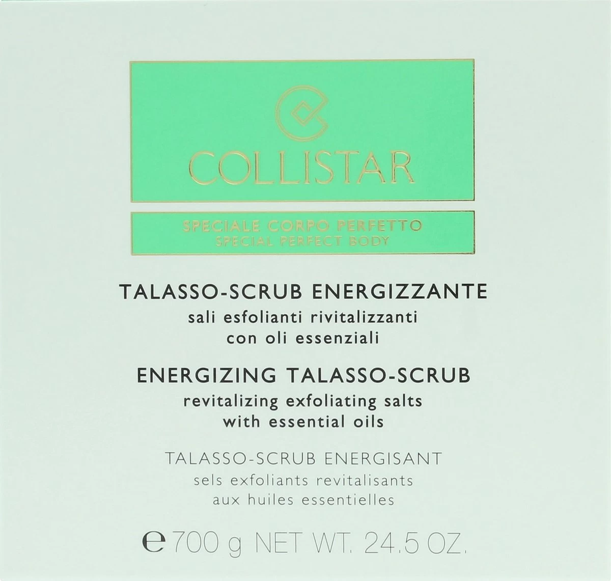 Collistar Energizing Talasso Body Scrub heeft een revitaliserende en herstellende werking en combineert de voordelen van thalassotherapie met die van aromatherapie. De scrub is geformuleerd met een mix van 90 soorten zeezout met verschillende korrelgrootte, een melange van plantaardige oliën en zuivere aromatische oliën. De mix van zeezouten heeft een heilzame werking en de melange van oliën voedt de huid en geeft het gevoel van energie en vitaliteit.