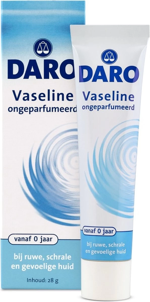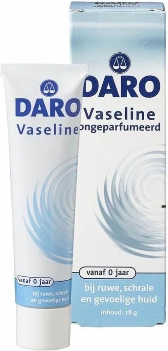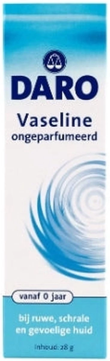 Daro Vaseline is een niet geparfumeerde zalf voor meerdere toepassingen. Daro Vaseline verzorgt niet alleen de droge, ruwe (baby)huid, maar beschermt ook de dunne huid van het gezicht tegen de uitdrogende invloed van kou. Daro Vaseline zit in een handige, hygiënische tube waardoor het gemakkelijk aan te brengen is.