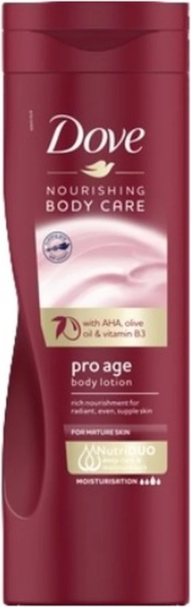 Dove Pro Age voedende Bodylotion voedt je huid en stimuleert het natuurlijke huidvernieuwingsprocess.