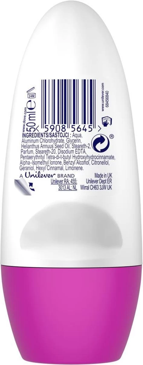 Maar het is niet alleen een verfrissende geur die de Dove Go Açaí Berry & Waterlily Anti-Transpirant Deodorant Roller zo’n goede keuze maakt. Naast onze betrouwbare anti-transpirantformule bevat deze deodorant ook 1/4 hydraterende crème met 100% natuurlijke oliën om je gevoelige huid te helpen herstellen van irritatie veroorzaakt door het scheren. Je krijgt prachtig zachte en gladde oksels in slechts drie dagen. Dus houd je Dove Go Fresh Açaí Berry & Waterlily Anti-Transpirant Deodorant Roller in de buurt als je ’s ochtends uit de douche stapt en houd je oksels zacht en verzorgd met Dove anti-transpirant.
