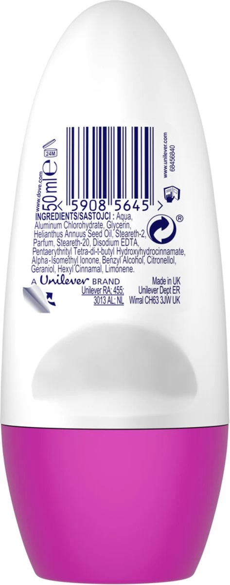 Dove Go Fresh Açaí Berry & Waterlily Anti-Transpirant Deodorant Roller biedt tot 48 uur bescherming tegen zweet en hydrateert de huid.