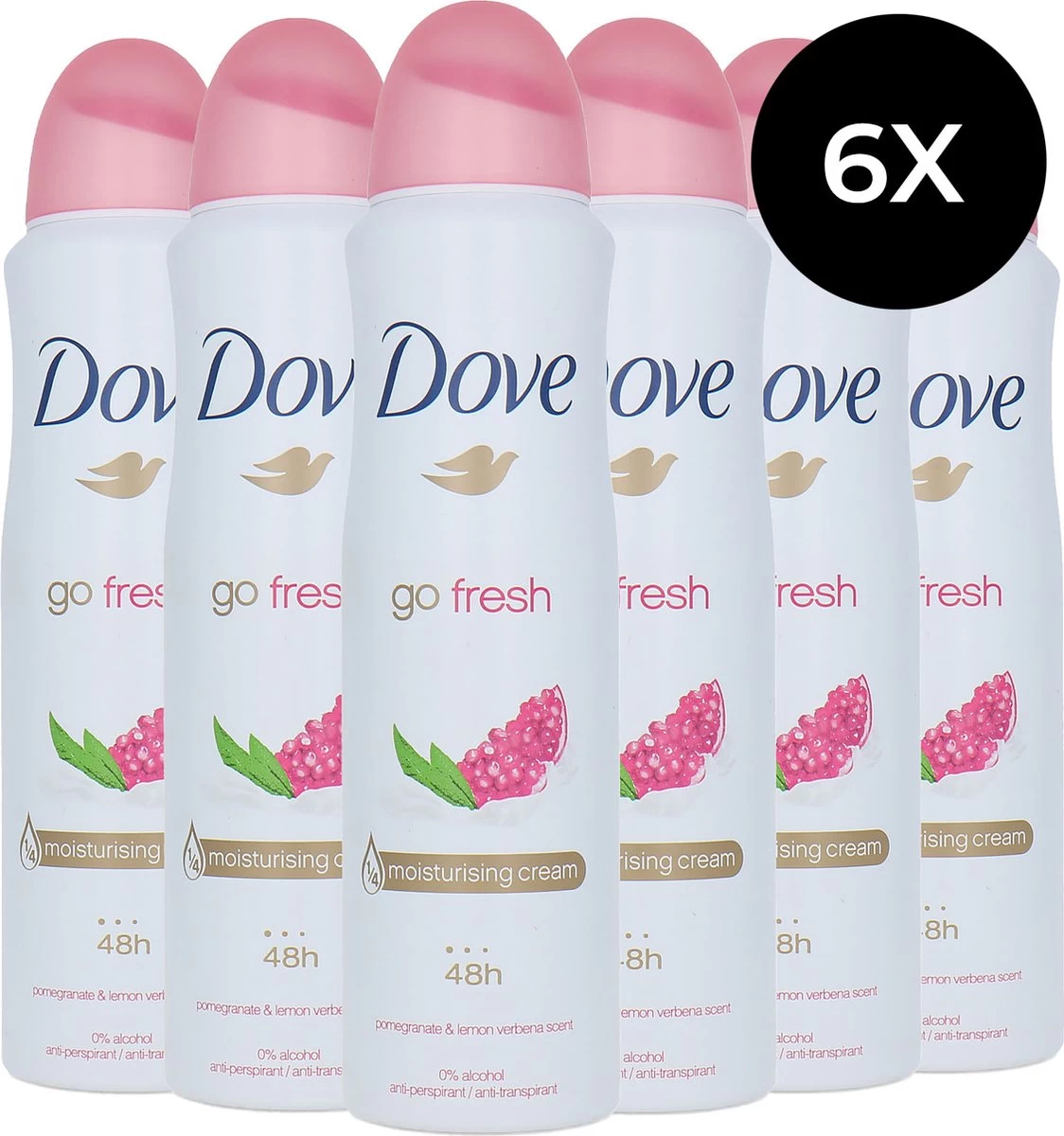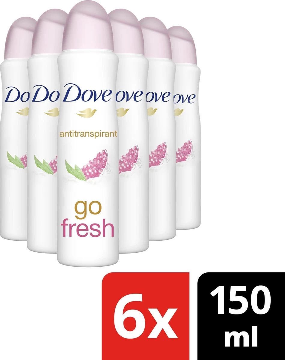 Dove Go Fresh Pomegranate anti-traspirant spray met de heerlijke frisse, pittige geur van granaatappel gecombineerd met een vleugje citroen verbena.