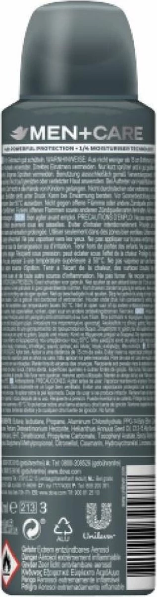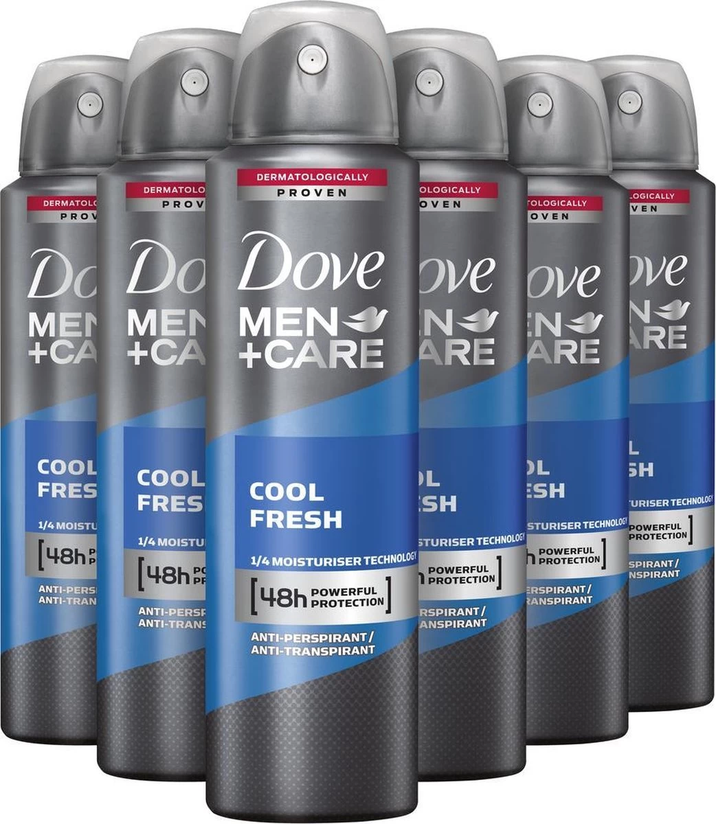 Als je regelmatig onderweg bent of sport, waardeer je het gemak van een langdurig werkende anti-transpirant. Dankzij de dermatologisch geteste formule van Dove Men+Care Cool Fresh Anti-Transpirant Deodorant Spray ben je tot 48 uur krachtig beschermd tegen zweet en lichaamsgeuren. Deze Dove Men+Care Cool Fresh Anti-Transpirant Spray bevat niet alleen anti-transpiratiemiddelen die je beschermen tegen transpiratievocht- en geur, maar ook de 1/4 hydraterende crème van Dove waardoor je huid beschermd wordt tegen irritaties. Dove Men+Care Cool Fresh heeft een koele, verfrissende geur die speciaal ontwikkeld is voor mannen. Geen compromissen op het gebied van kwaliteit, kracht of comfort. Blijf de hele dag fris en krachtig beschermd tegen zweet met Dove Cool Fresh. Dove Men+Care Cool Fresh Anti-Transpirant Deodorant Spray is hard tegen zweet en zacht voor de huid.