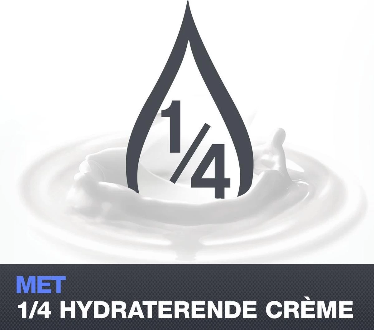 - Met 1/4 hydraterende crème – verzorgt de huid en beschermt tegen irritatie