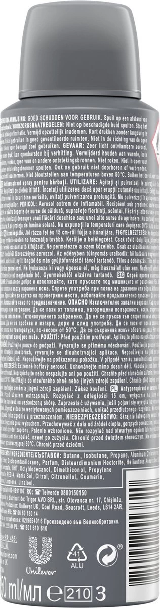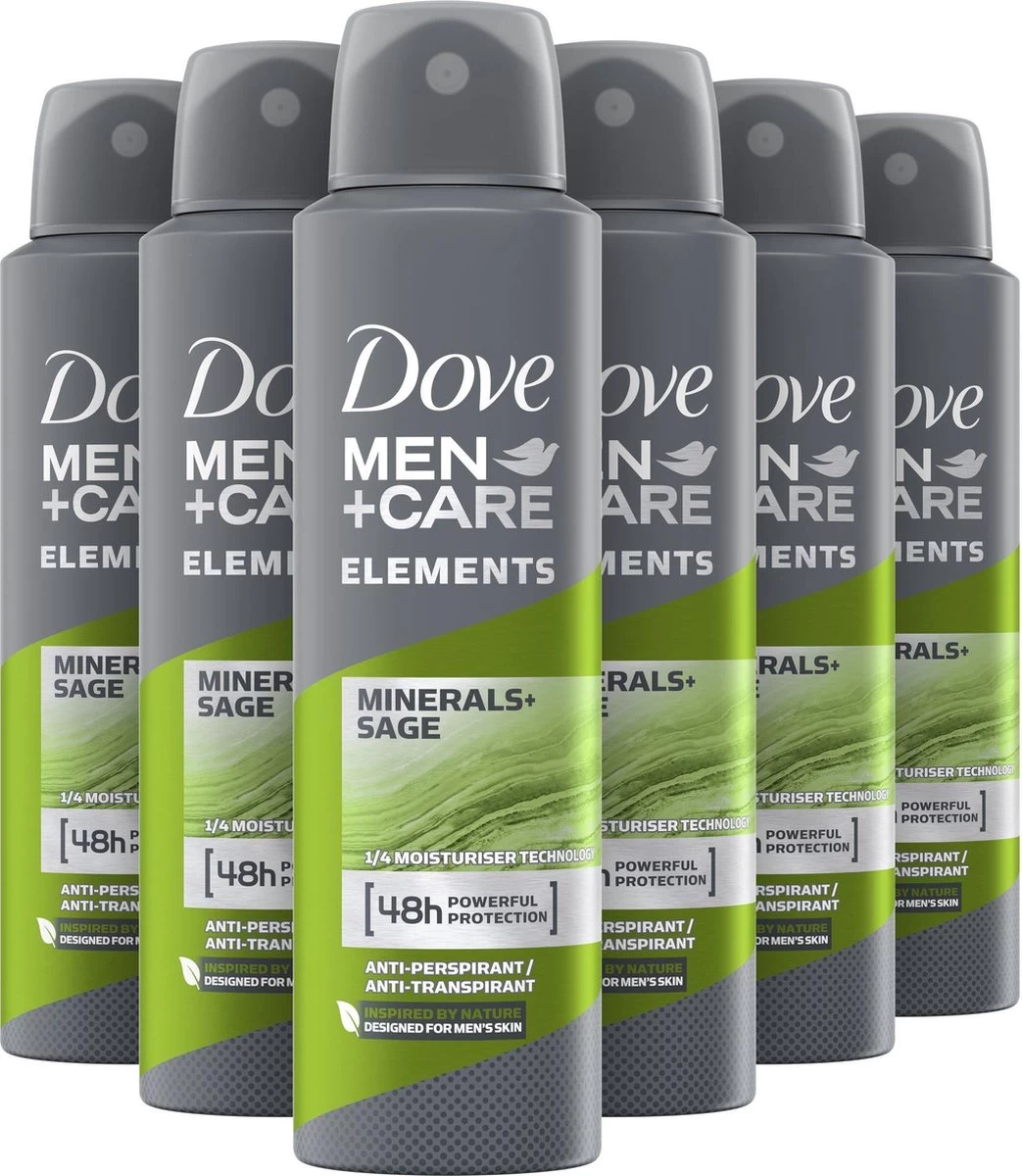 Dove Men+Care Elements Minerals & Sage Anti-Transpirant Deodorant Spray laat je kracht van natuurlijke elementen ontdekken. Dove Men+Care Anti-Transpirant Spray is hard tegen zweet, maar zacht voor de huid. Als je regelmatig onderweg bent, waardeer je het gemak van een langdurig werkende deodorant. Dankzij de dermatologische geteste formule van Dove Men+Care Minerals & Sage Anti-Transpirant Deodorant Spray ben je 48 uur krachtig beschermd tegen zweet en lichaamsgeuren. Bovendien bevat het de 1/4 hydraterende technologie die de huid verzorgt en beschermt tegen irritatie onder de oksels. Dove Men+Care Minerals+Sage heeft een subtiele, verfrissende, mannelijke geur. Geen compromissen op het gebied van kwaliteit, kracht of comfort. Alle Dove Men+Care producten zijn speciaal ontworpen om de beste verzorging te bieden voor de man. Hoe gebruik je het? Dove Men+Care Anti-Transpirant gebruik je onder je oksels. Voor 48 uur krachtige anti-transpirant bescherming, schud je eerst de deodorant. Houd de deodorant daarna rechtop, ongeveer 15 cm van je oksel en spray twee of drie keer onder elke oksel. Zorg dat de deodorant gelijkmatig onder beide oksels is verdeeld. Dove Men+Care biedt naast anti-transpiranten ook deodoranten aan. Beide geven een langdurig fris gevoel en hebben een verzorgende werking voor de kwetsbare okselhuid. Anti-transpiranten bevatten aluminiumzouten die de hoeveelheid zweet verminderen en ervoor zorgen dat je oksels droog blijven, zodat onaangename geurtjes geen kans krijgen. Deodoranten bevatten geen aluminiumzouten, maar wel actieve ingrediënten die ongewenste geurtjes bestrijden. Beide formules zijn vrij van alcohol en verrijkt met de unieke 1/4 hydraterende crème van Dove. Dus welke je ook kiest, je kunt altijd vertrouwen op bescherming, frisheid en heerlijk zachte, gladde en verzorgde oksels.