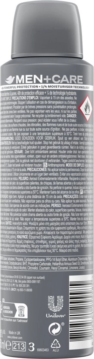 Dove Men+Care anti-transpirant geeft 48 uur bescherming tegen transpiratie en hydrateert je huid. Het bevat namelijk de unieke 1/4 hydraterende crème van Dove en vitamine E. De huid wordt hier voelbaar zachter en gladder door. Bovendien bevat deze milde formule 0% alcohol, dus is deze deodorant ook geschikt voor de gevoelige huid. Laat zelfvertrouwen beginnen bij je oksels, en voel je optimaal verzorgd en beschermd met Dove Men+Care Invisible Dry Anti-Transpirant Deodorant Spray. Combineer deze anti-transpirant met je kleurigste kleding en vergeet vlekken op je kleding voor altijd.