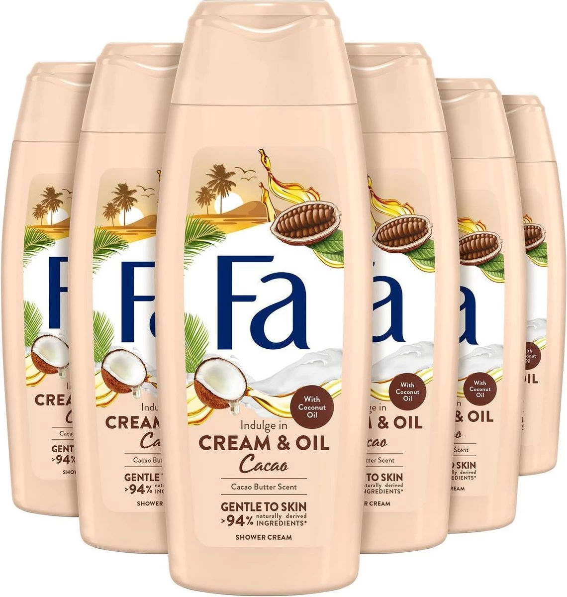 Ontdek Fa Cream & Oil Cacao douchegel met kokosolie en de geur van cacoaboter. De vegan formule bevat 94% ingrediënten van natuurlijke oorsprong (incl. water).
