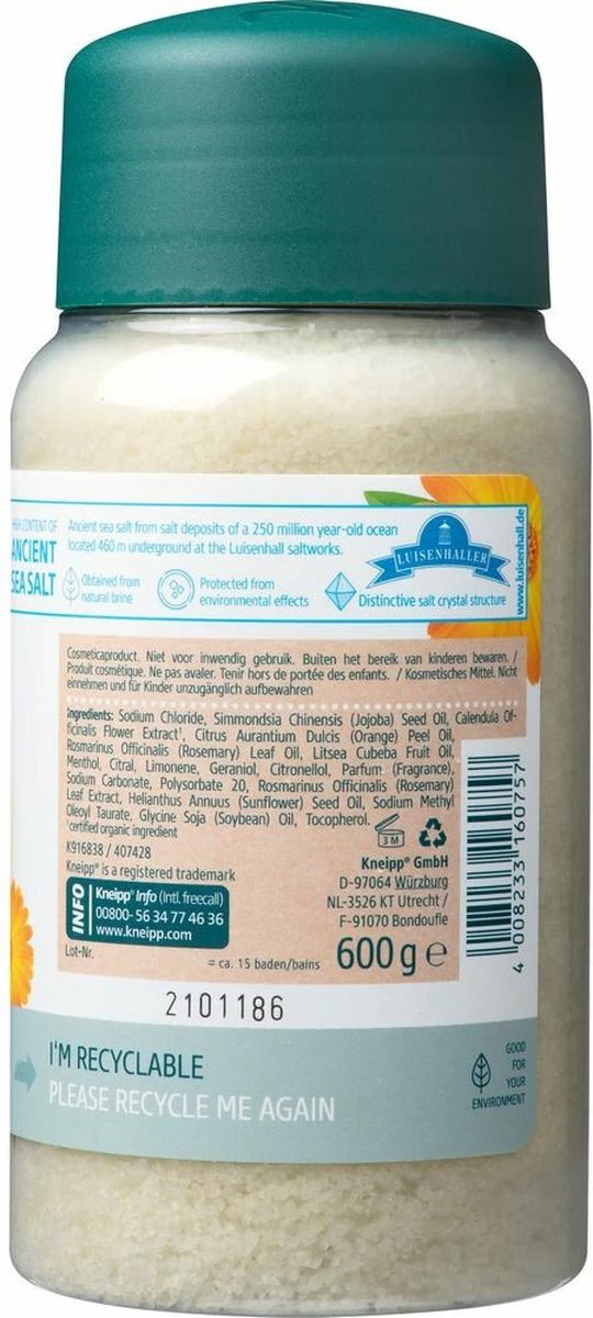 Verwen jezelf en je voeten met een ontspannend voetbad na een zware dag! De citrusgeur met natuurlijke, etherische sinaasappelolie revitaliseert de zintuigen en verfrist. Met natuurzuiver thermaalzout reinigen de Kneipp® voetbadkristallen Vitalizing – Calendula Sinaasappelolie op milde wijze de vermoeide en gestreste voeten. Ze neutraliseren nare geuren en verzachten eelt. De optimale voorbereiding voor de daaropvolgende voetverzorging!
