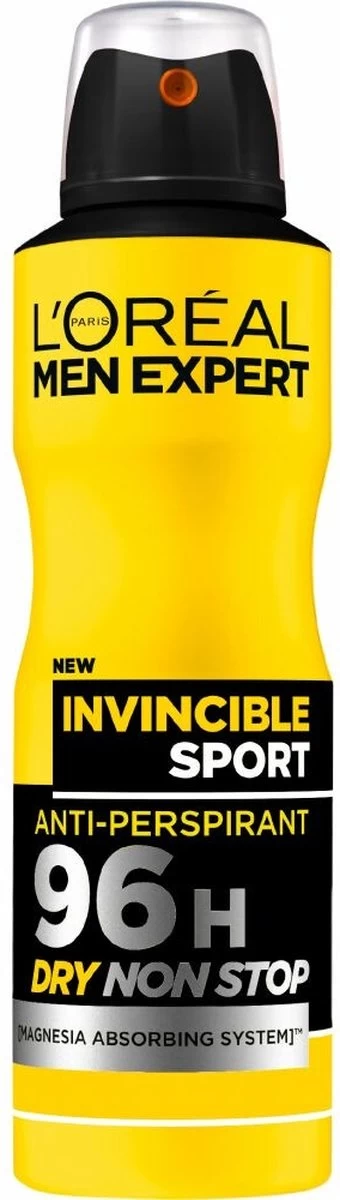 De Men Expert Invincible Sport deodorant spray is speciaal ontwikkeld voor mannen die een sportief leven leiden. Deze deodorant spray heeft een anti-transpirant formule verrijkt met magnesia, biedt extreme bescherming tot 96 uur lang. Perfecte bescherming voor je super actieve dagen en intense trainingen.