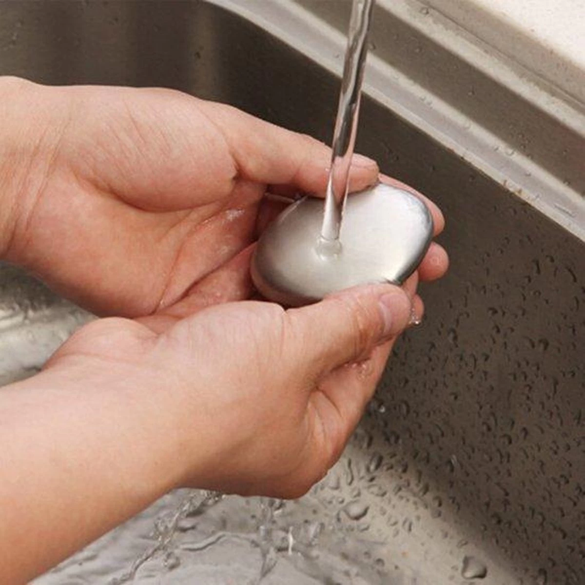 1. De roestvrij stalen zeep heeft een speciale laag die, terwijl je het gedurende 30-60 seconden in je handen wrijft, alle geuren zal opnemen en dit zonder enige schoonmaakmiddel