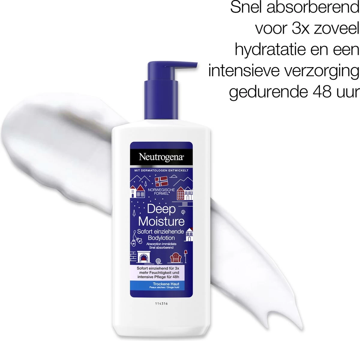 De unieke Noorse formule is verrijkt met hydraterende glycerine. Het verdrievoudigt het vochtgehalte van de huid en zorgt voor 48 uur intensieve hydratatie. De bodylotion trekt snel in, dringt tot 10 lagen diep door in de huid en zorgt voor hydratatie, daar waar dit het meest nodig is. De bodycrème beschermt tegen omgevingsfactoren die de huid uitdrogen. Vanaf het allereerste gebruik wordt de droge huid zacht en soepel. Voor een mooie en gezond uitziende huid – elke dag. Met een frisse, aangename geur. De snel absorberende formule laat geen plakkerige film achter, zodat u zich meteen na het aanbrengen kunt aankleden. Dankzij de handige doseerpomp is de bodylotion zuinig in gebruik. Crème aanbrengen met een dispenser gaat snel, één druk op de pomp volstaat.