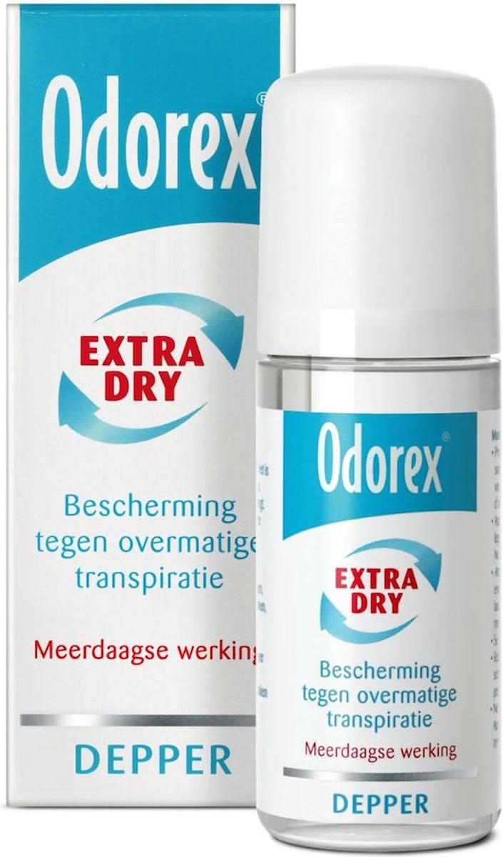 De Odorex Extra Dry Depper biedt bescherming tegen overmatige transpiratie en hoeft slechts 2 à 3 keer per week gebruikt te worden. Door de unieke formule blijft de Odorex Extra Dry Depper langer werkzaam dan een reguliere deodorant. De effectieve werking maakt het gebruik van een reguliere deodorant overbodig. Je blijft gegarandeerd droog. Het is veilig voor de huid en kleding mits de gebruiksaanwijzing nauwkeurig wordt opgevolgd. De Odorex Extra Dry Depper heeft als voordeel dat het makkelijk doseerbaar is door het unieke deppersysteem.
