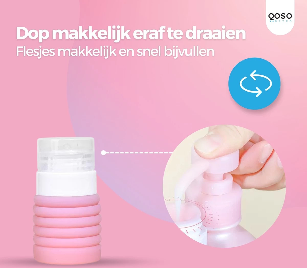 - 2x Opvouwbaar reisflesje Roze | 35ml – 88ml