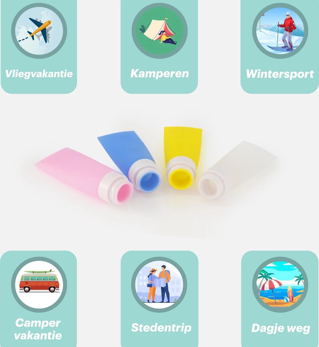 Ga je niet op vliegreis? Ook dan is deze compacte set enorm handig voor als je gaat backpacken of kamperen. De set neemt minimale ruimte in jouw toilettas, backpack of reistas! Denk aan shampoo, zonnebrand, bodylotion of make-up remover.