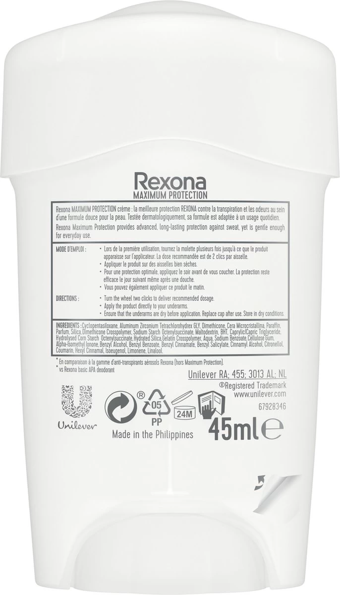 Rexona Maximum Protection Sensitive Dry is een deodorant Cream stick voor vrouwen 3 x effectiever dan de meeste anti-transpiranten. Rexona’s meest geavanceerde, langdurige bescherming tegen zweet en geur.