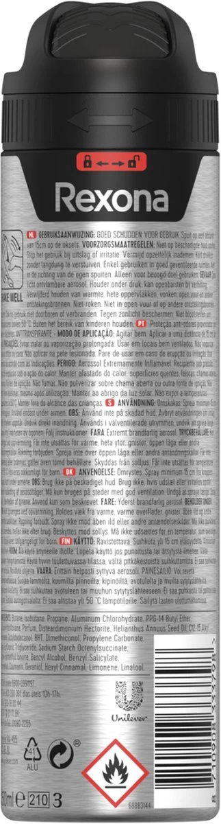 Rexona Men Active Protection + Original Anti-transpirant Spray is geformuleerd om 48 uur bescherming te bieden tegen zweet en geur, zodat je je de hele dag fris, droog en beschermd voelt. Deze anti-transpirant spray voor mannen heeft een verkwikkende en frisse geur, waardoor je het vertrouwen hebt om de hele dag lang te blijven bewegen, terwijl je je fris en droog voelt. Door de unieke MotionSense Technologie geeft deze anti-transpirant frisheid bij iedere beweging. Microcapsules hechten zich aan de huid en barsten open door de wrijving van beweging, waardoor er een krachtige uitbarsting van de frisse geur wordt afgegeven, om jou het vertrouwen te geven om je dag naar een hoger niveau te tillen. Dus, iedere stap en sprint komt met een stimulerende boost. Met bescherming van de tot 48 uur werking zullen zweet en onaangename geur jou niet in de weg staan. Je kunt blijven gaan naar waar jij wilt zijn, en dan nog iets verder. Voel je fris, voel je energiek en voel je overal op voorbereid. Rexona. Daar kun je op vertrouwen. Hoe te gebruiken: Schud de Rexona Men Active Protection + Original Anti-transpirant bus eerst goed. Houd de deodorant dan 15 centimeter van je onderarm en spray gelijkmatig in een goed geventileerde ruimte. Vermijd contact met de ogen en beschadigde huid.