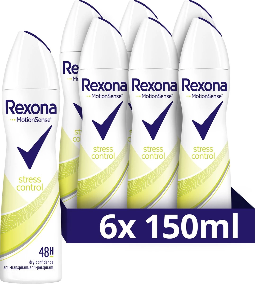 Rexona Women Stress Control Anti-transpirant Spray is geformuleerd om 48 uur bescherming te bieden tegen zweet en geur. Zodat je je de hele dag fris, droog en beschermd voelt.