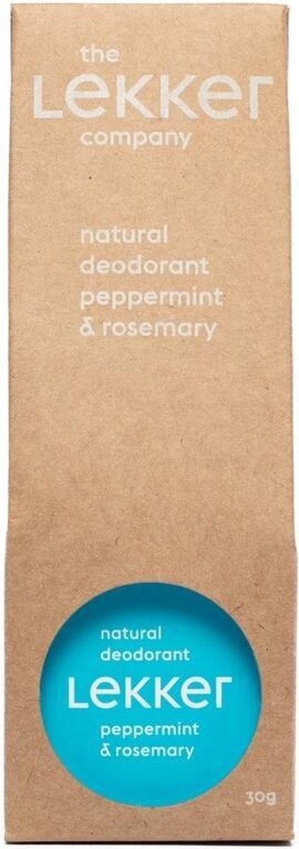 the lekker company natuurlijk en vegan deodorant met pepermunt & rozemarijn geur.