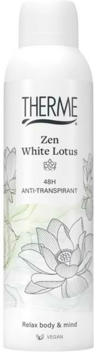 Therme Zen White Lotus Anti Transpirant biedt 48 uur effectieve bescherming tegen transpiratiegeur en vochtvorming. Geniet van de serene geur van witte lotus gecombineerd met aromatische jasmijn en subtiele witte musk.