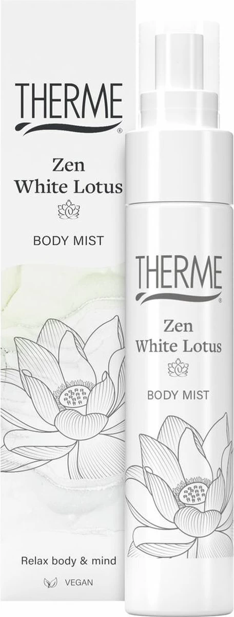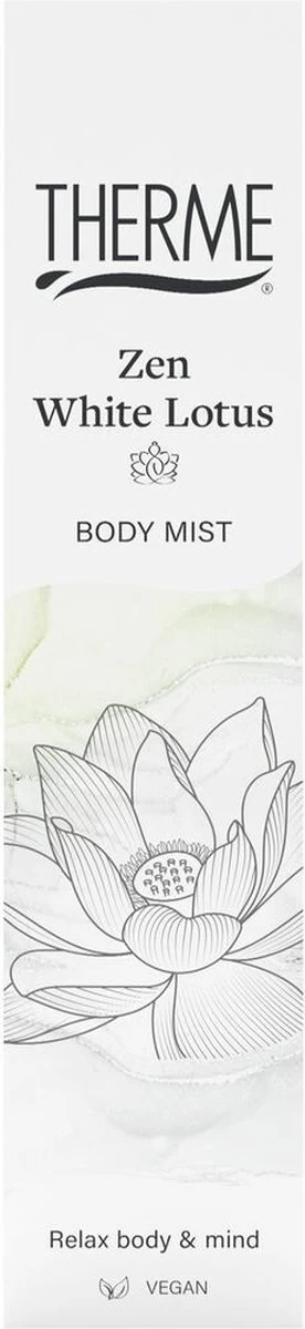 Therme Zen White Lotus Body Mist is een parfumerende spray voor het hele lichaam. De mist heeft een verfrissende en hydraterende werking. Geniet van de serene geur van witte lotus gecombineerd met aromatische jasmijn en subtiele witte musk.