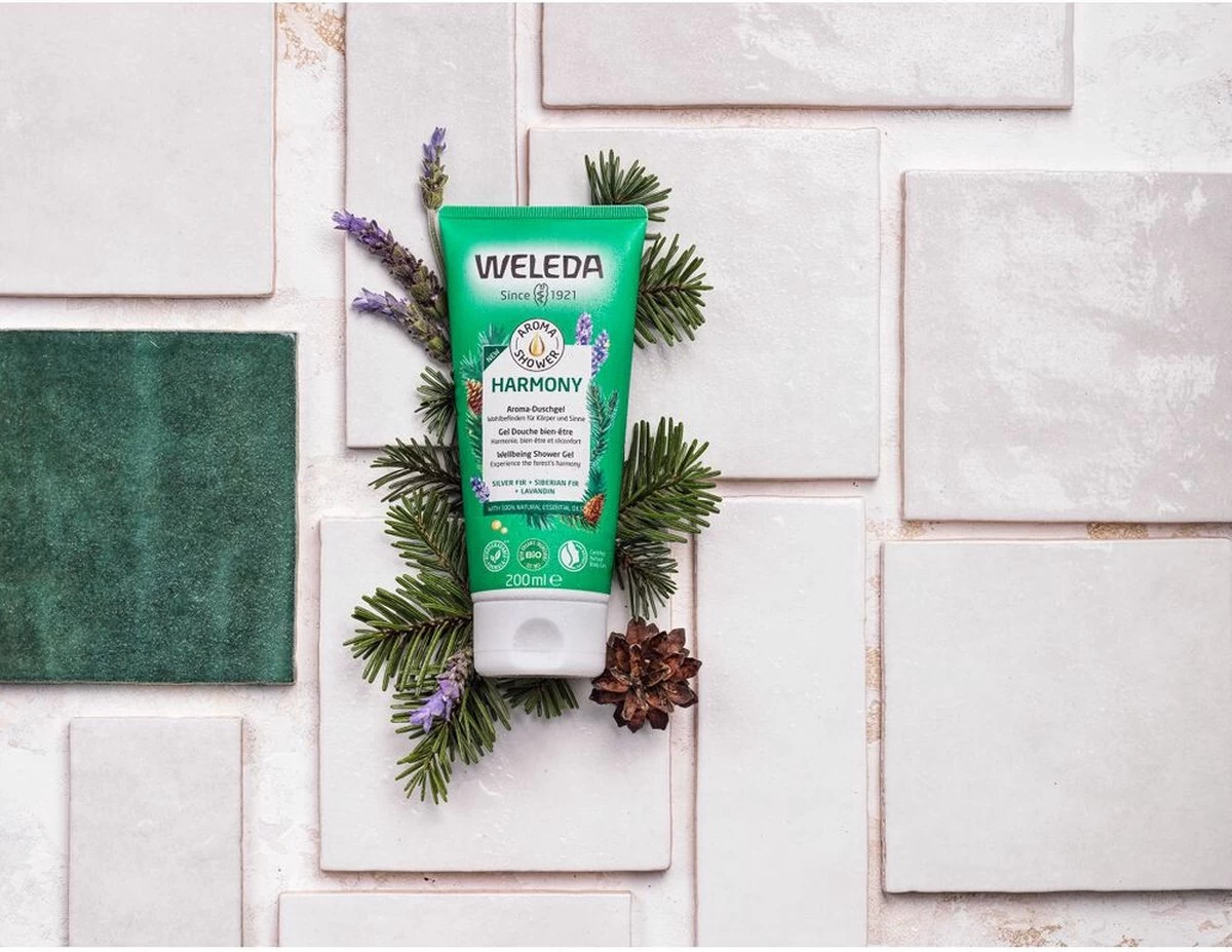 Aroma Shower Harmony met natuurlijke etherische oliën heeft een aromatherapeutische verhelderende werking op je gemoedstoestand en gevoel. Ervaar de rust en harmonie van het sparrenbos onder de douche. De 100% natuurlijke geur van zilverspar, Siberische spar en lavandin brengt je in balans en zorgt voor een ontspannen moment. Aroma Shower Harmony is 100% natuurlijk, alle ingrediënten komen rechtstreeks uit de natuur. Deze milde douchegel is op basis van 100% plantaardige stoffen die de huid zacht reinigen en niet uitdrogen. Na het douchen voelt je huid aangenaam en soepel aan.